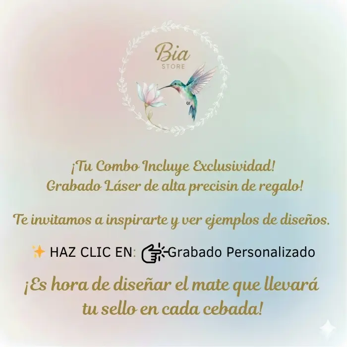 ✨ Exclusividad y Durabilidad Garantizada: La virola de acero inoxidable no solo le da un acabado de lujo y moderno, sino que también protege el borde de tu mate, asegurando que se mantenga impecable con el uso diario. Imagina la sensación de tener un mate que refleja tu pasión por el buen gusto. No esperes más para tener esta joya en tus manos. Además, ¡te ofrecemos la opción de un grabado personalizado con láser de alta precisión en la virola! Esto lo convierte en el regalo perfecto o en una pieza única que te represente. ¡Haz clic en "Comprar ahora" y asegura tu mate exclusivo antes de que se agoten!