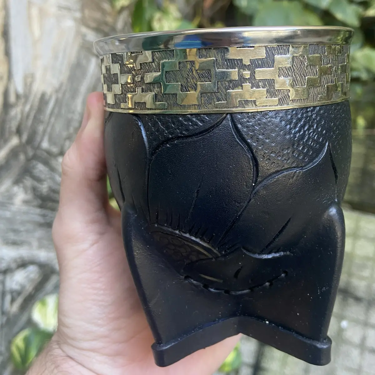 Eleva tu ritual del mate a una verdadera declaración de estilo y tradición con este exclusivo Combo de Mate Imperial de Calabaza y Bombilla Premium. Diseñado para el amante del mate que valora la artesanía, la calidad superior y la durabilidad, este mate no es solo un recipiente, es una obra de arte. Su cuerpo de calabaza natural asegura un sabor auténtico, mientras que el forrado en cuero vacuno legítimo repujado artesanalmente (como se aprecia en las imágenes) le otorga una textura y un diseño únicos que capturarán todas las miradas.