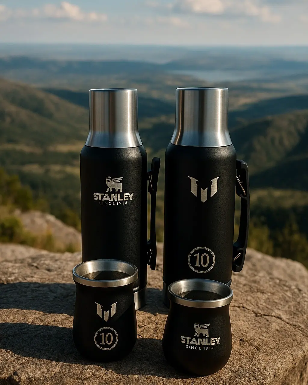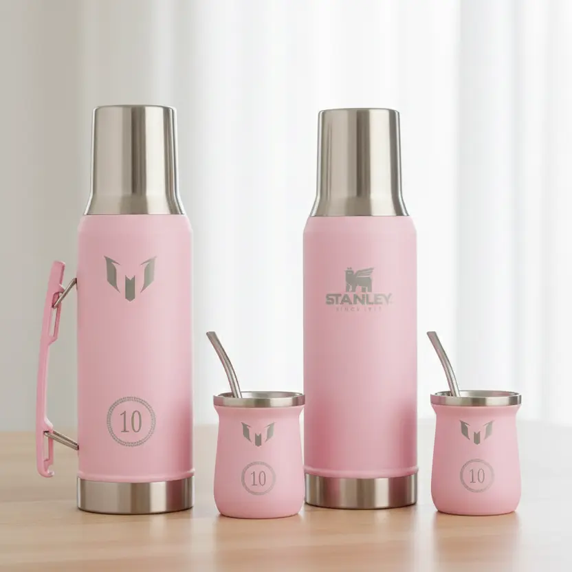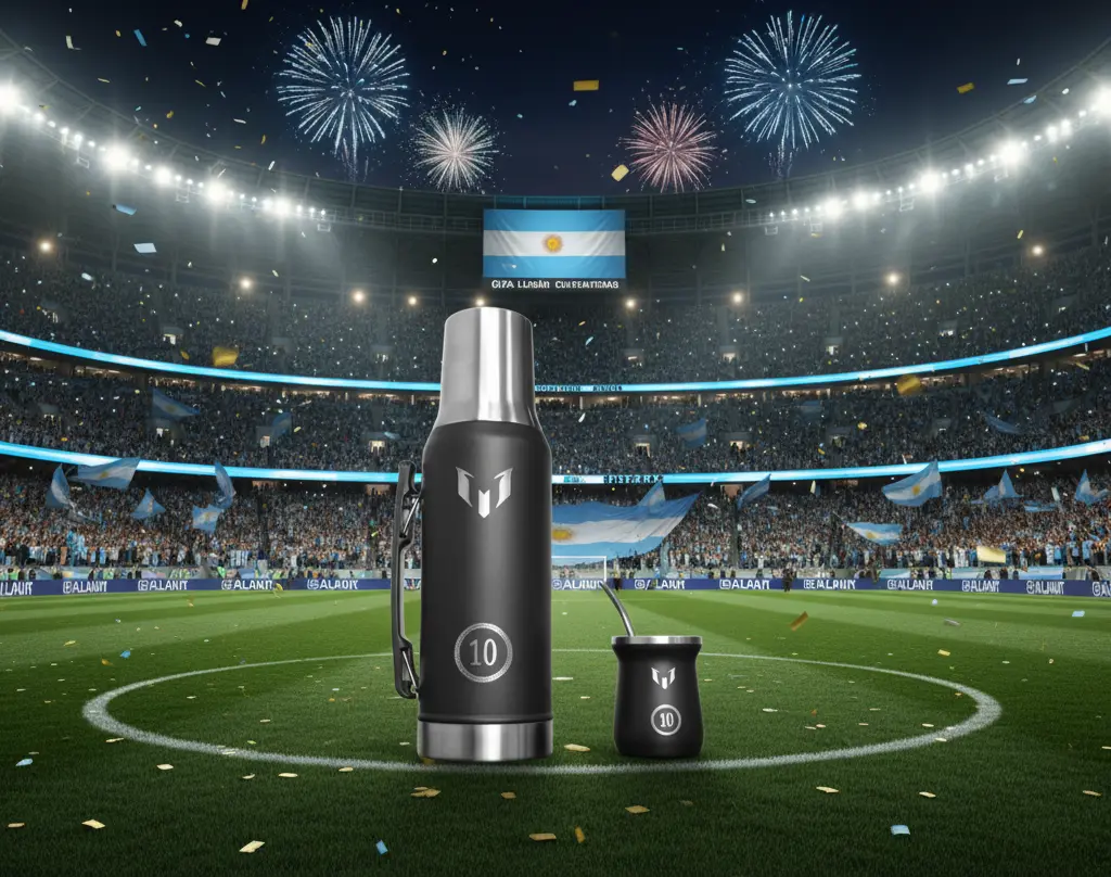 ¡Lleva la pasión del mate al siguiente nivel con el Termo Messi 1.2L! Este no es solo un termo; es la combinación perfecta de diseño icónico y tecnología de vanguardia para garantizar que tu bebida favorita te acompañe en cada momento del día, con la temperatura ideal. Fabricado con acero inoxidable AISI 304 de máxima calidad y un resistente recubrimiento powder coated antideslizante, este kit es tan duradero como elegante. Olvídate de termos que fallan: gracias a su aislamiento de doble pared al vacío, mantiene tus líquidos fríos o calientes por más de 24 horas, asegurando un mate perfecto de la mañana a la noche.